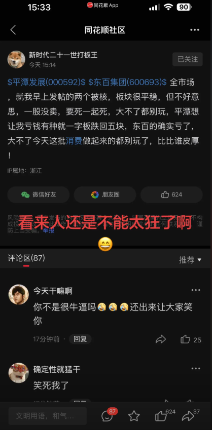 兄弟上午东百和平谭涨停板还在那求虐求收割,下午主力直接教做人